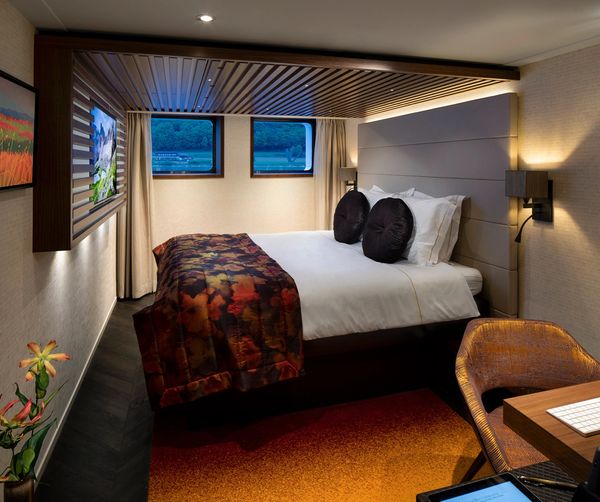 The smallest cabins, at 205 sq.ft., feature a sleek, modern design style that combines contemporary elegance with luxurious comfort. The incorporation of darker wood tones adds an element of richness and warmth to the interior decor.